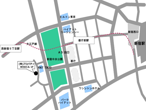 アクセス大江戸線「都庁前駅」と「西新宿5丁目駅」から徒歩約6分。「都庁前駅」のA5出口より新宿中央公園内を横切るとやや近いです。ザ・ノット東京ホテルの裏手の通り沿いなります。 本社住所: 東京都新宿区西新宿4-29-6 WISビル1FTEL 03(5990)6540 Google Map